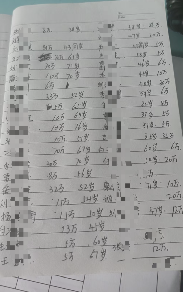 部分储户受骗金额统计,大多数受骗者为中老年人。受访者供图